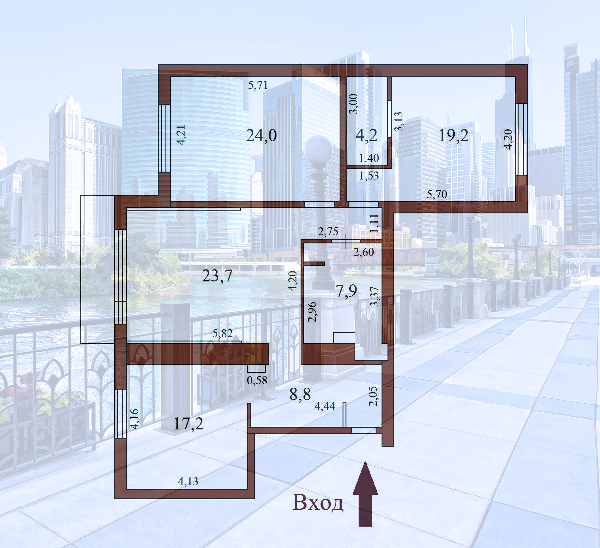 Площадь кухни, кв.м. 17.2