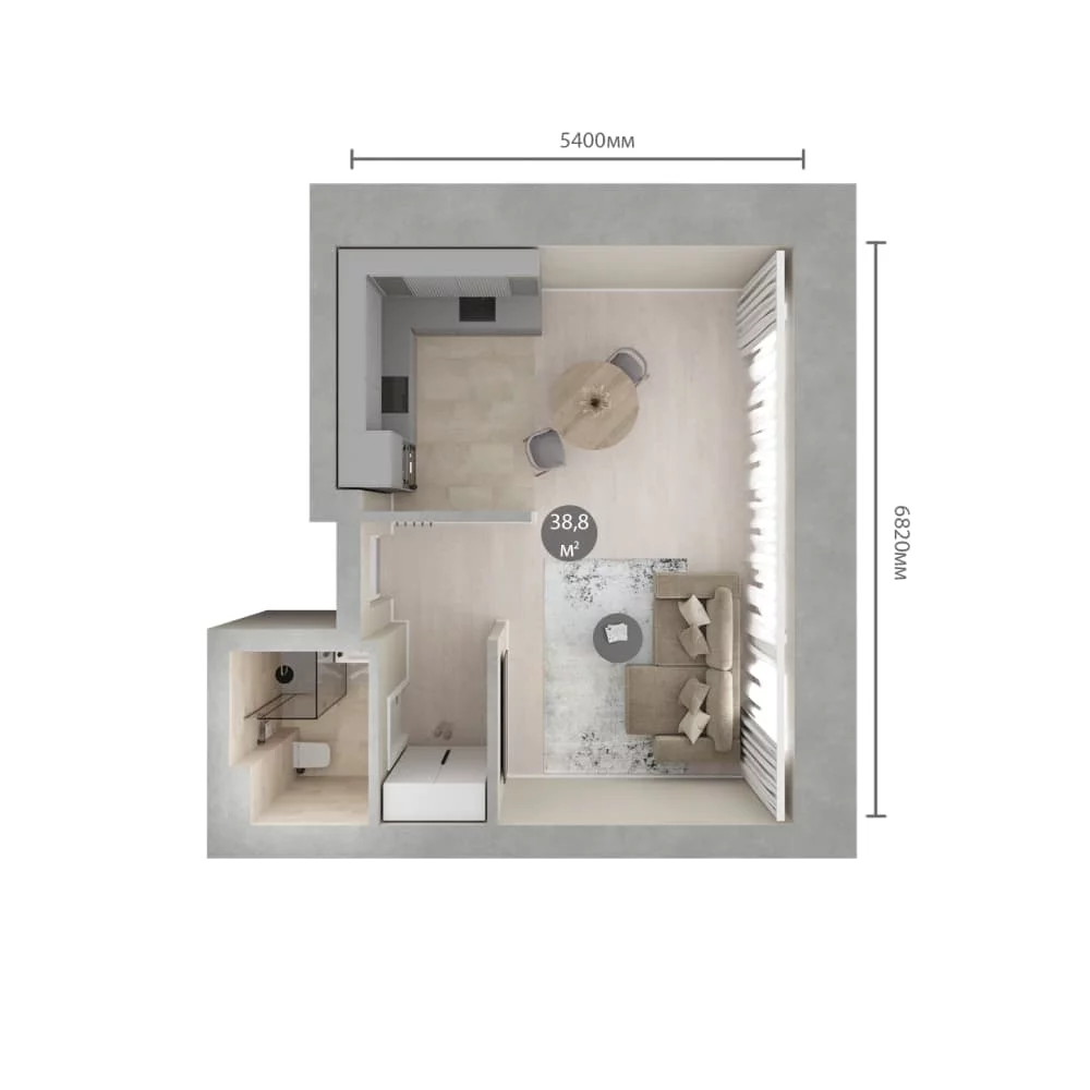 • Квартира общей площадью 38.7 кв.м., расположена на 3м этаже 4х этажного жилого дома.