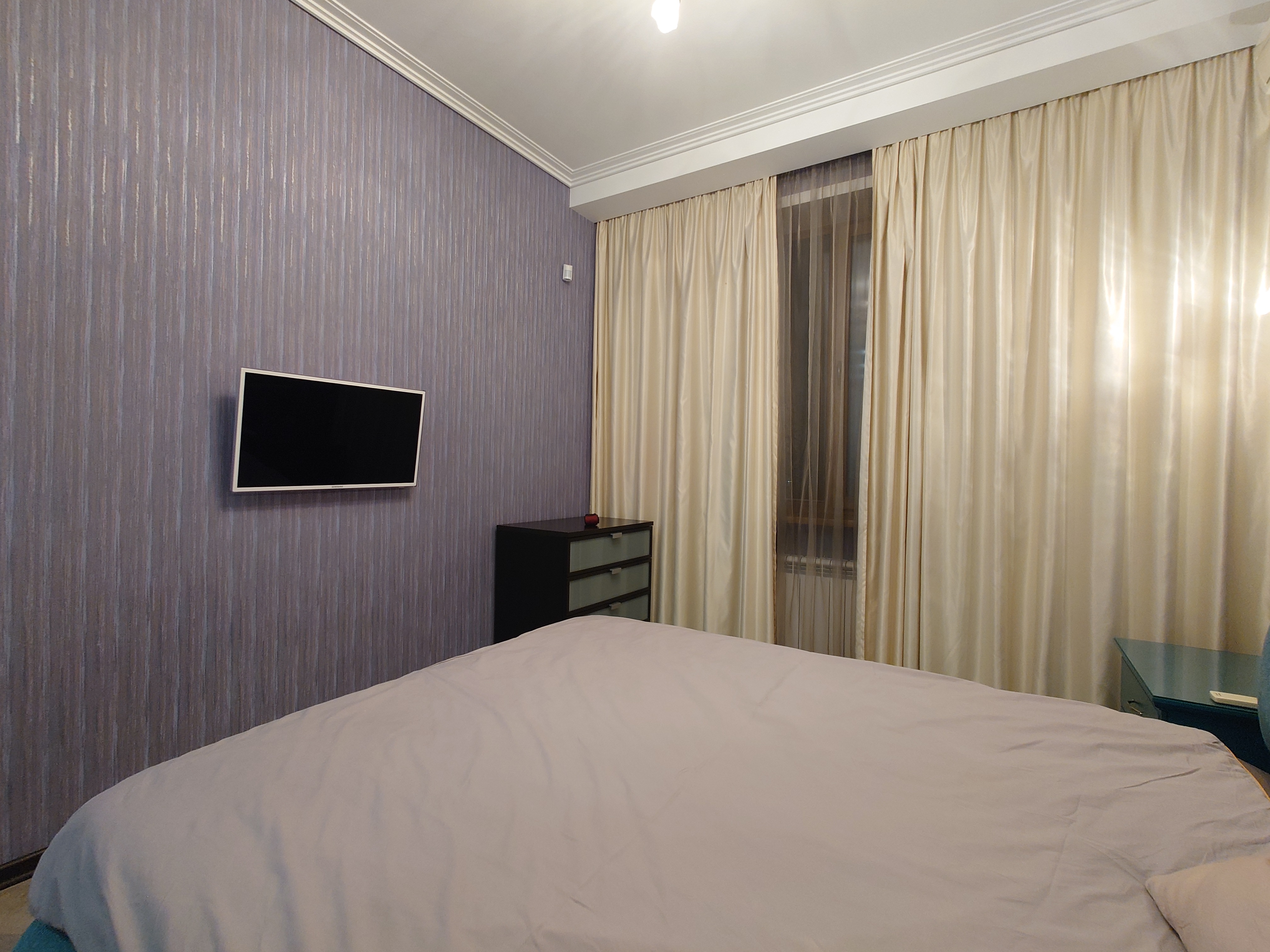 • В квартире для проживания есть вся мебель и бытовая техника: телевизор, электропечь, чайник, стиральная машина, микроволновая печь, пылесос, утюг, двуспальная кровать и др.
