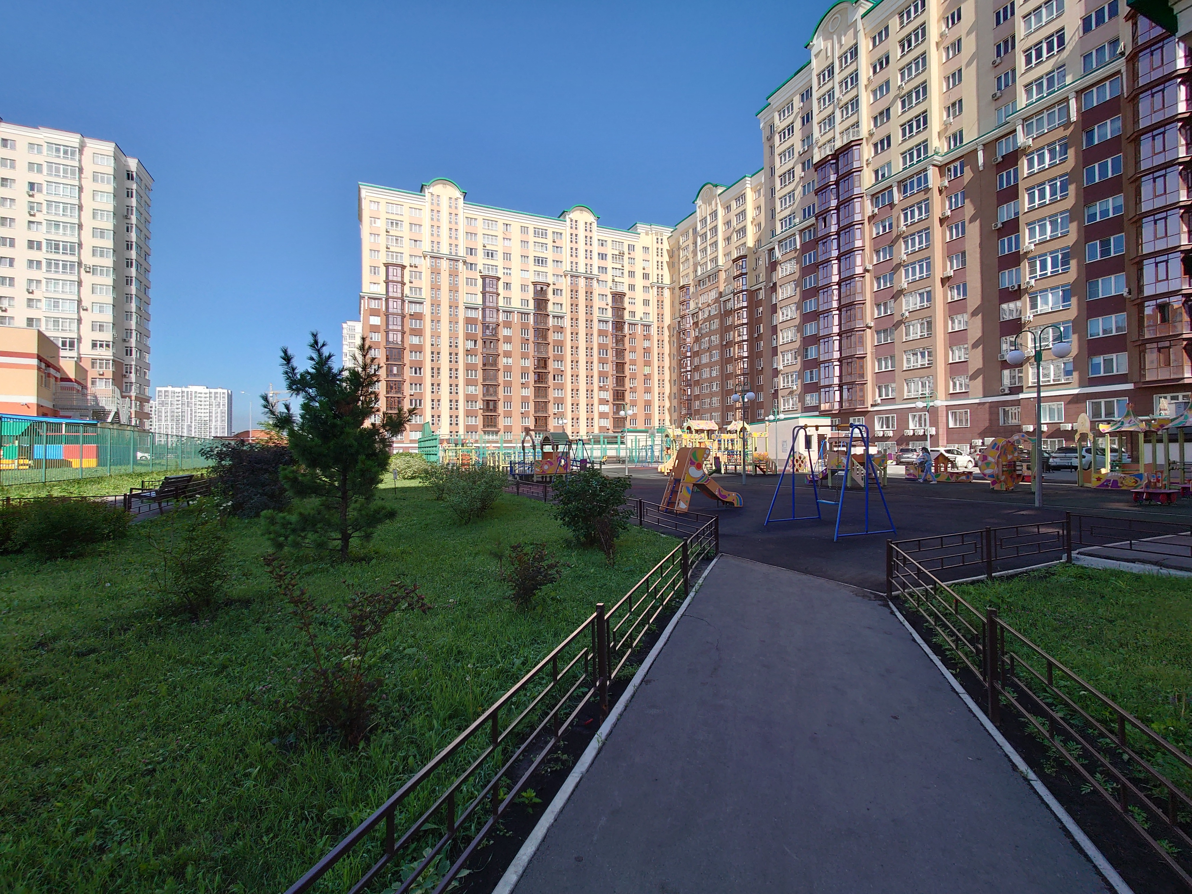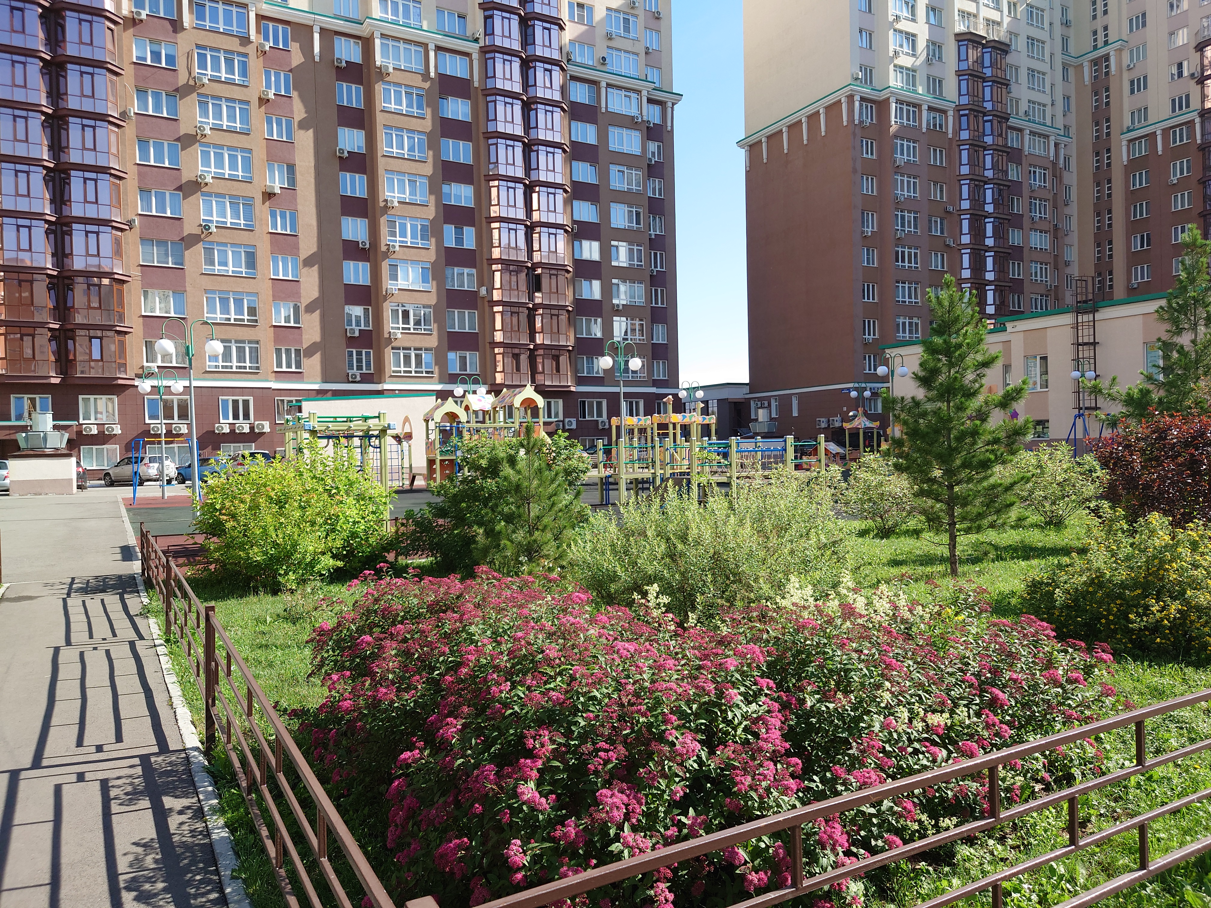 • В ЖК «Притомский» есть сквер с детскими и спортивными площадками. Во дворе подземный паркинг. Территорию просматривают камеры видеонаблюдение.